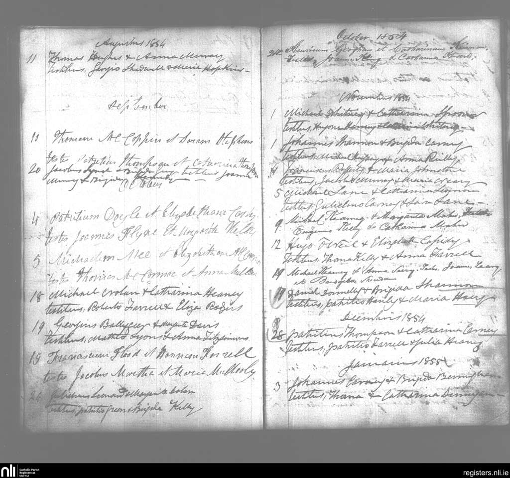 Templemichael; County of Longford; Diocese of Ardagh. Marriages, Aug. 1854 to Jan. 1855