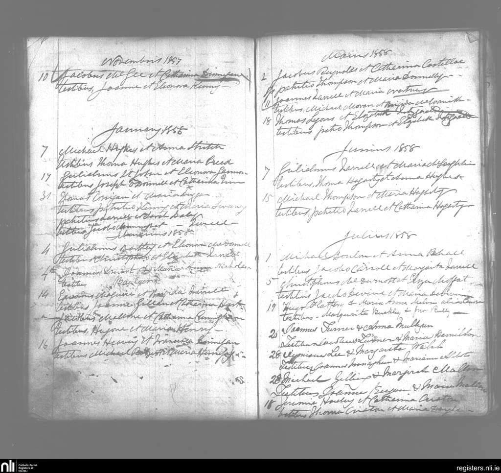 Templemichael; County of Longford; Diocese of Ardagh. Marriages, Nov. 1857 to July 1858