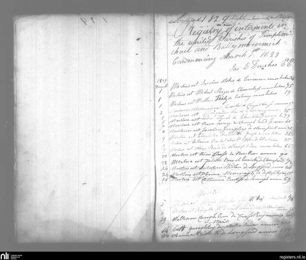 Templemichael; County of Longford; Diocese of Ardagh. Deaths, Mar. 1829 to Apr. 1829