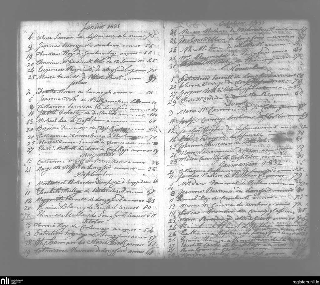 Templemichael; County of Longford; Diocese of Ardagh. Deaths, June 1831 to Jan. 1832
