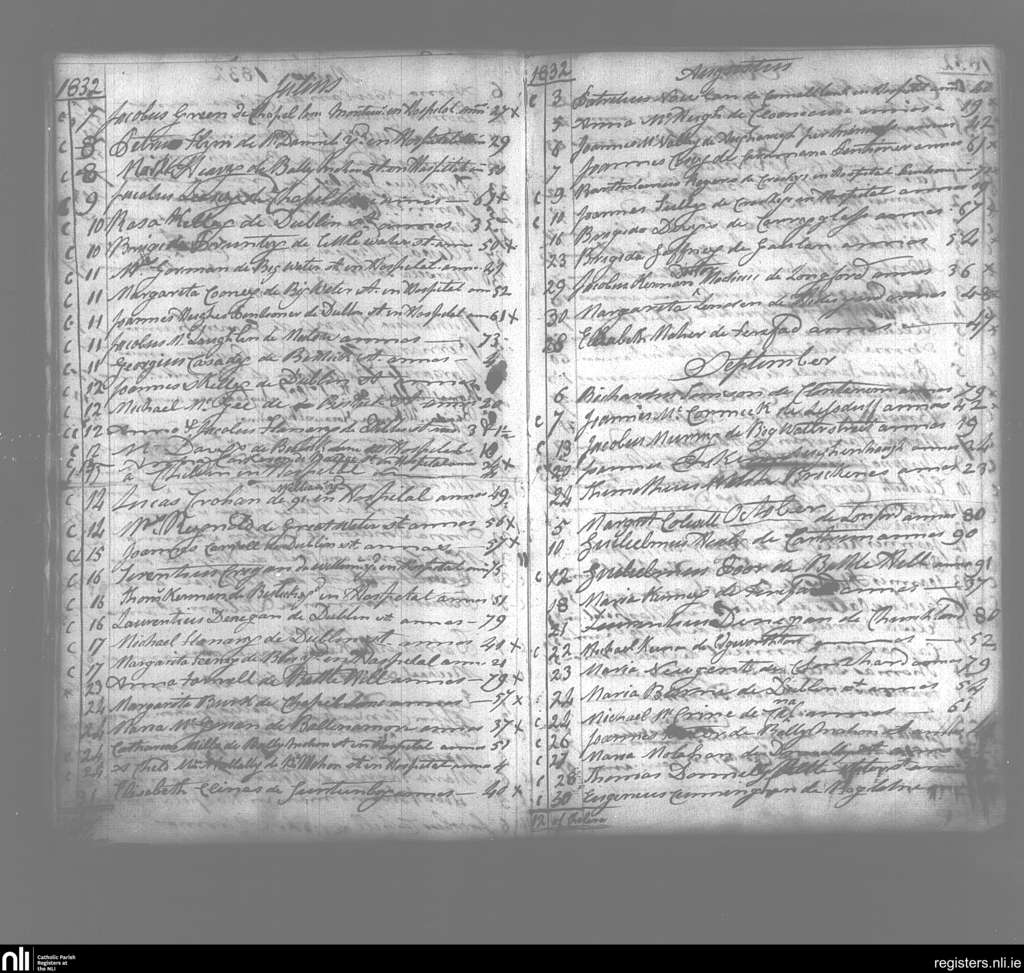 Templemichael; County of Longford; Diocese of Ardagh. Deaths, July 1832 to Oct. 1832