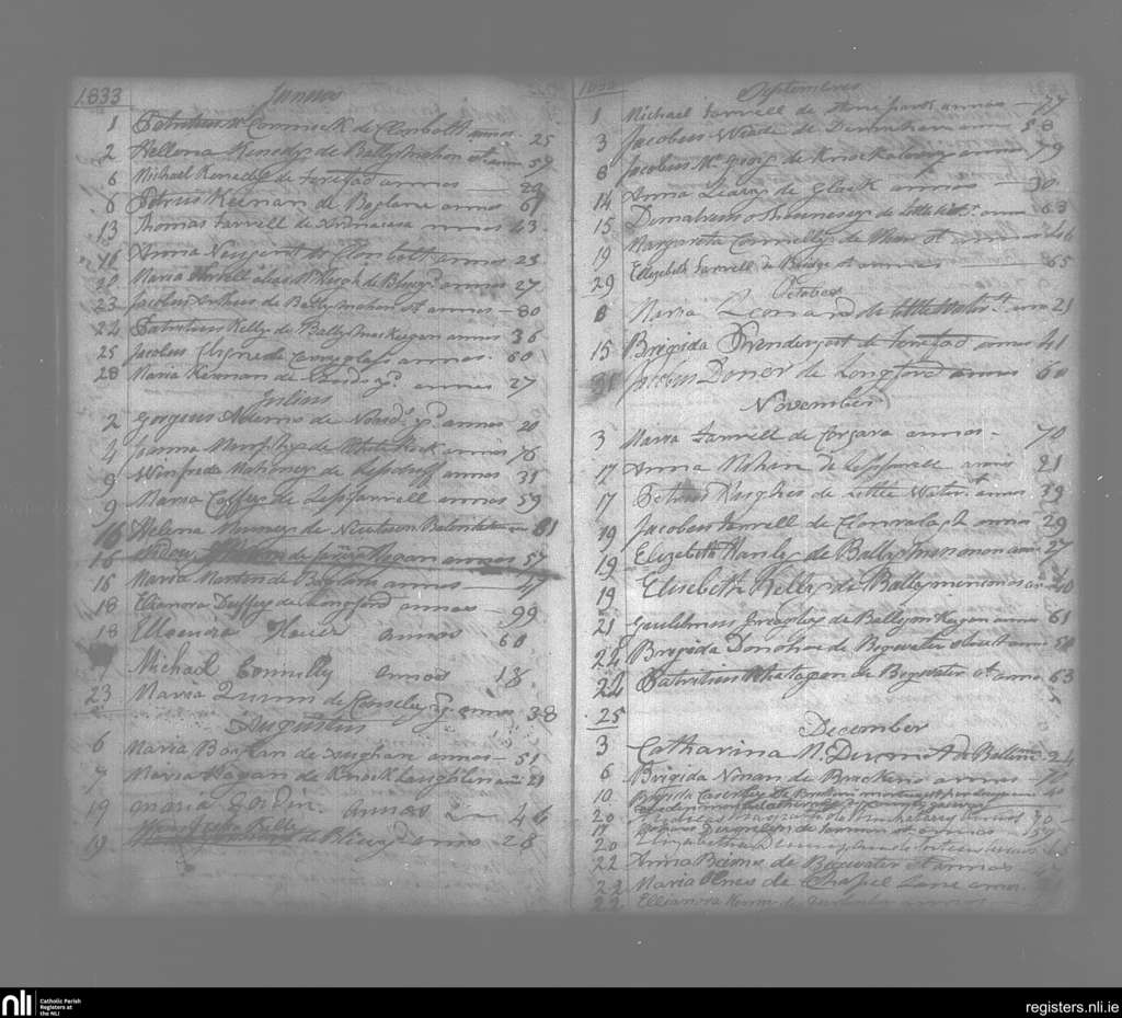 Templemichael; County of Longford; Diocese of Ardagh. Deaths, June 1833 to Dec. 1833