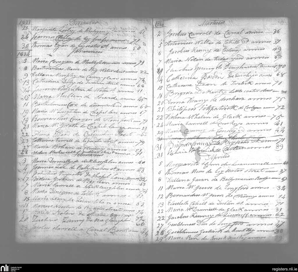 Templemichael; County of Longford; Diocese of Ardagh. Deaths, Dec. 1833 to Apr. 1834