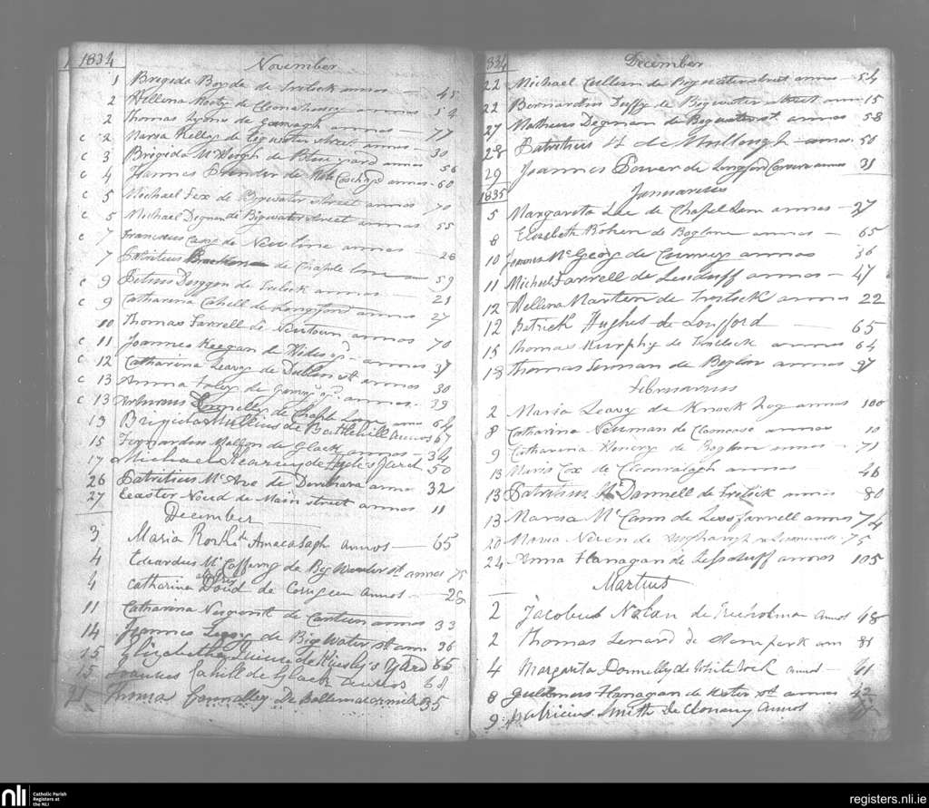 Templemichael; County of Longford; Diocese of Ardagh. Deaths, Nov. 1834 to Mar. 1835