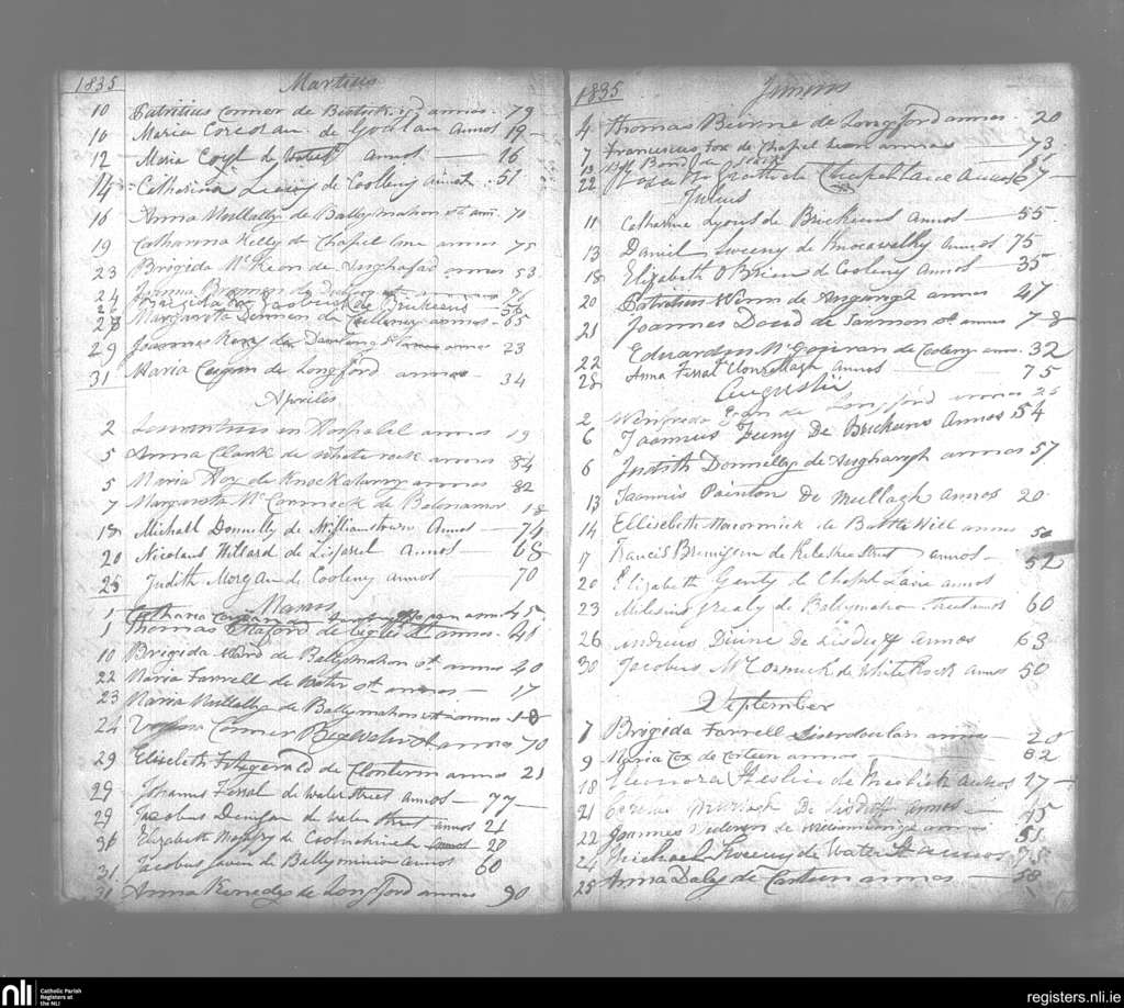 Templemichael; County of Longford; Diocese of Ardagh. Deaths, Mar. 1835 to Sep. 1835