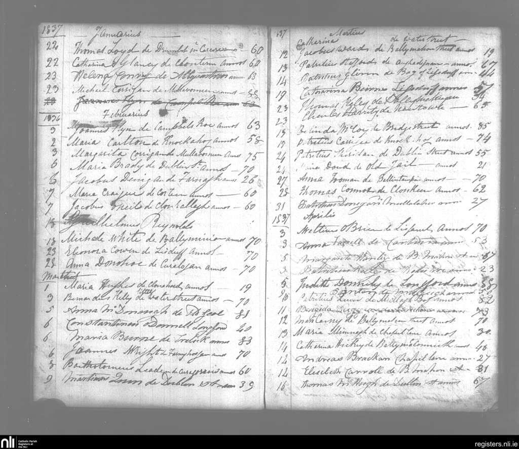 Templemichael; County of Longford; Diocese of Ardagh. Deaths, Jan. 1837 to Apr. 1837