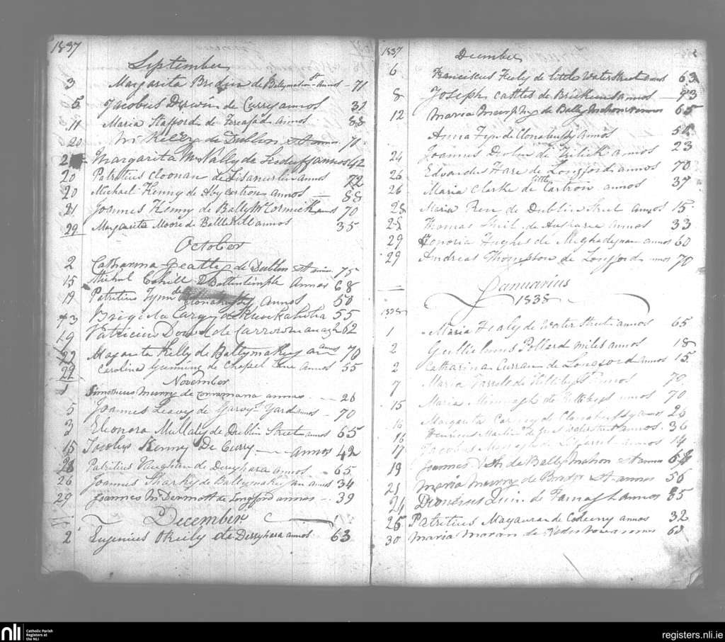 Templemichael; County of Longford; Diocese of Ardagh. Deaths, Sep. 1837 to Jan. 1838
