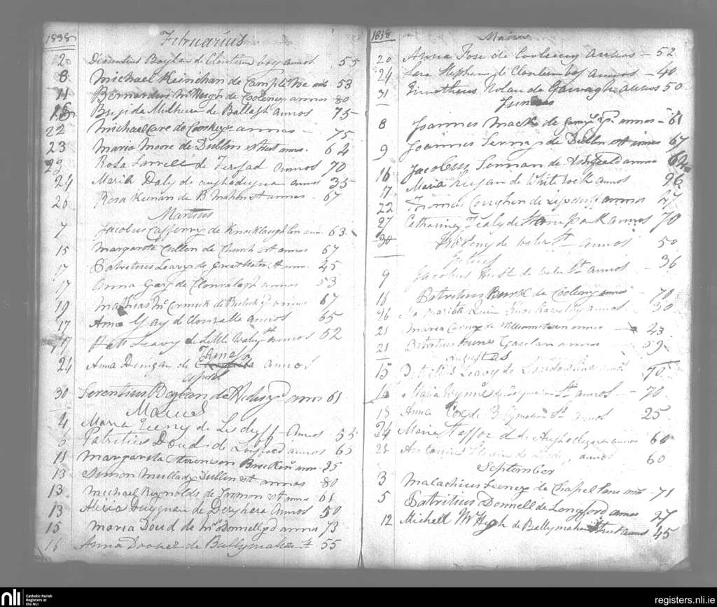 Templemichael; County of Longford; Diocese of Ardagh. Deaths, Feb. 1838 to Sep. 1838
