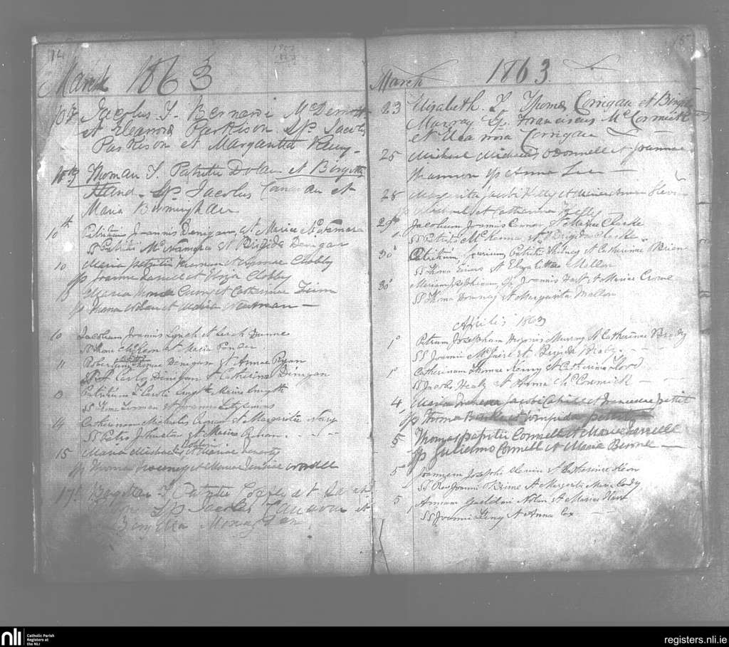 Templemichael; County of Longford; Diocese of Ardagh. Baptisms, Mar. 1863 to Apr. 1863