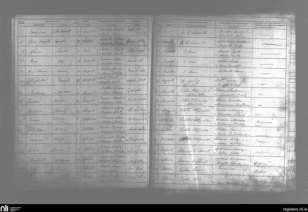 Templemichael; County of Longford; Diocese of Ardagh. Baptisms, Aug. 1868 to Sep. 1868