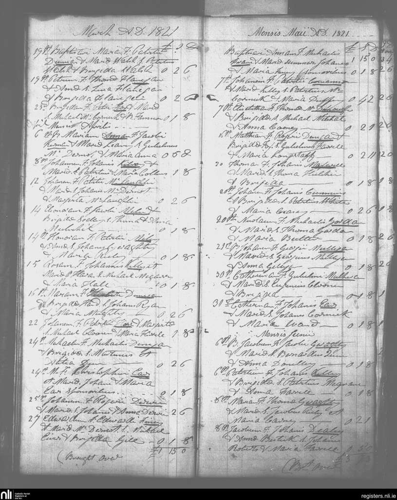 Shrule; County of Longford; Diocese of Ardagh. Baptisms, Mar. 1821 to June 1821