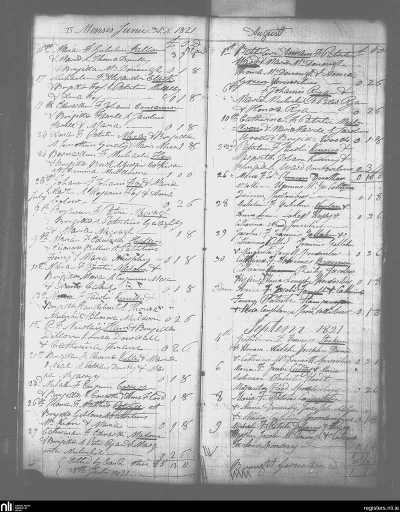 Shrule; County of Longford; Diocese of Ardagh. Baptisms, June 1821 to Sep. 1821