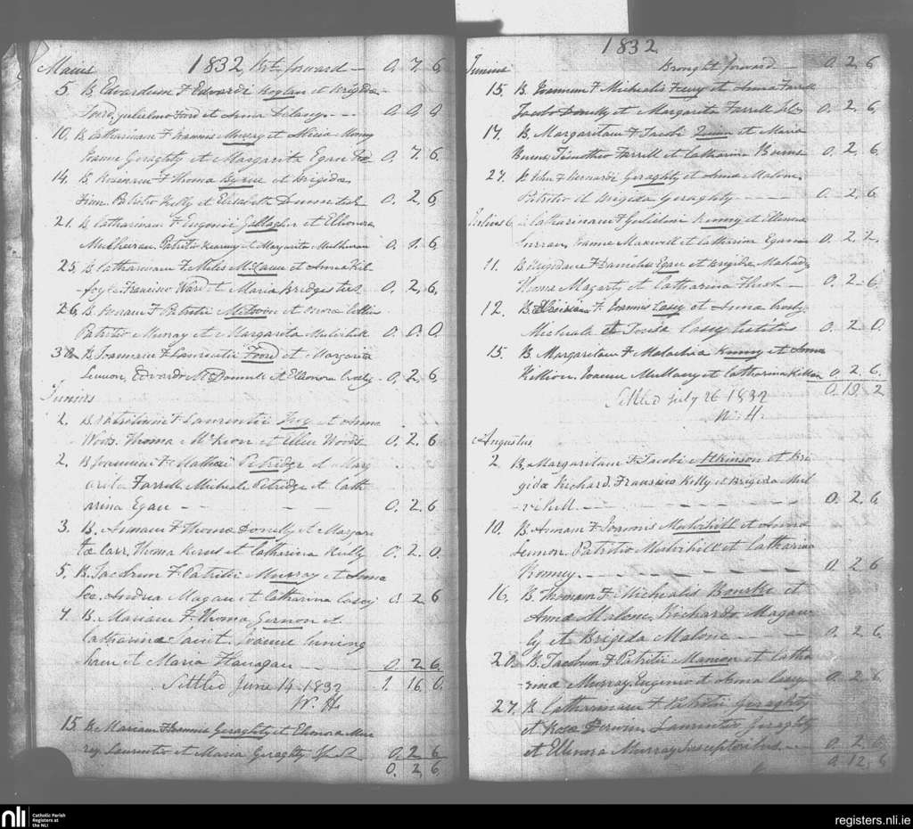 Shrule; County of Longford; Diocese of Ardagh. Baptisms, May 1832 to Aug. 1832