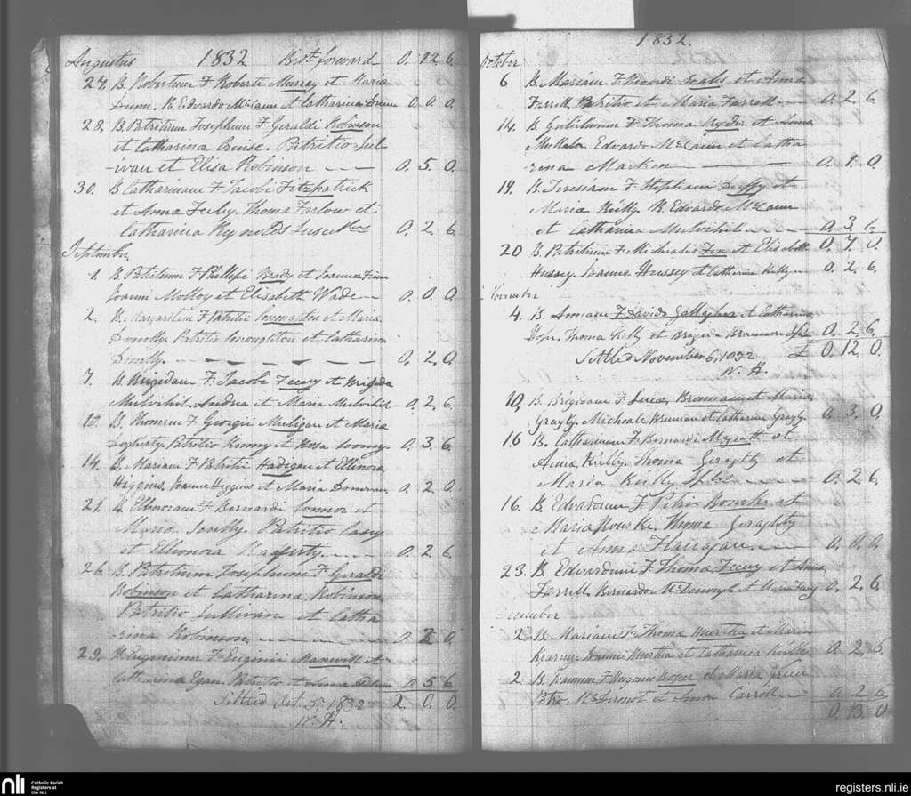 Shrule; County of Longford; Diocese of Ardagh. Baptisms, Aug. 1832 to Dec. 1832