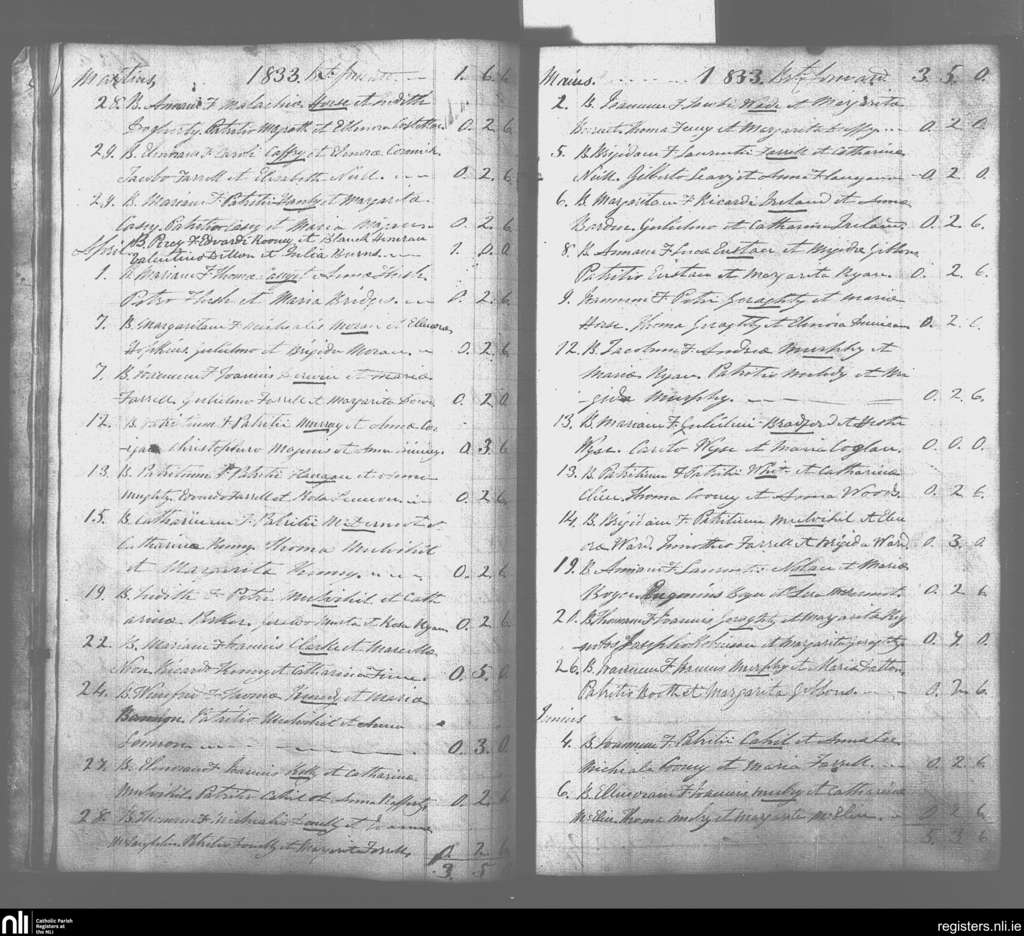 Shrule; County of Longford; Diocese of Ardagh. Baptisms, Mar. 1833 to June 1833