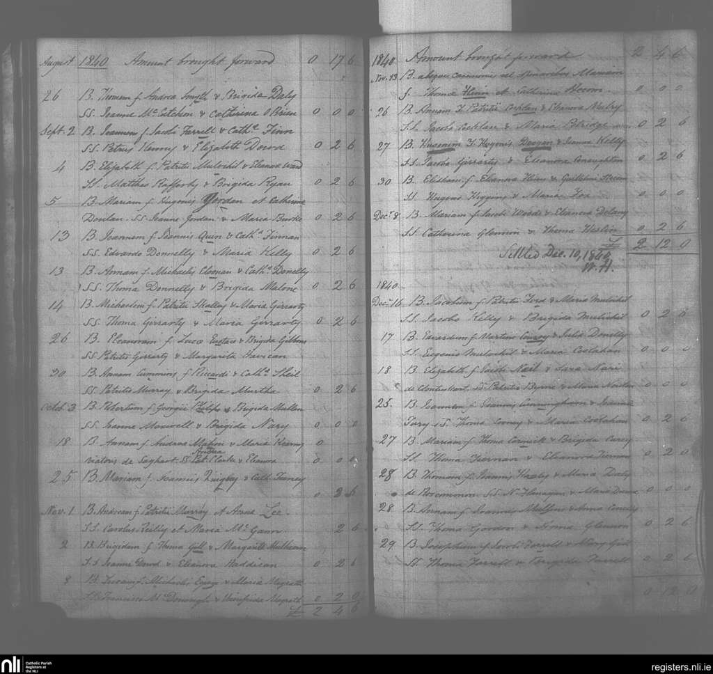 Shrule; County of Longford; Diocese of Ardagh. Baptisms, Aug. 1840 to Dec. 1840