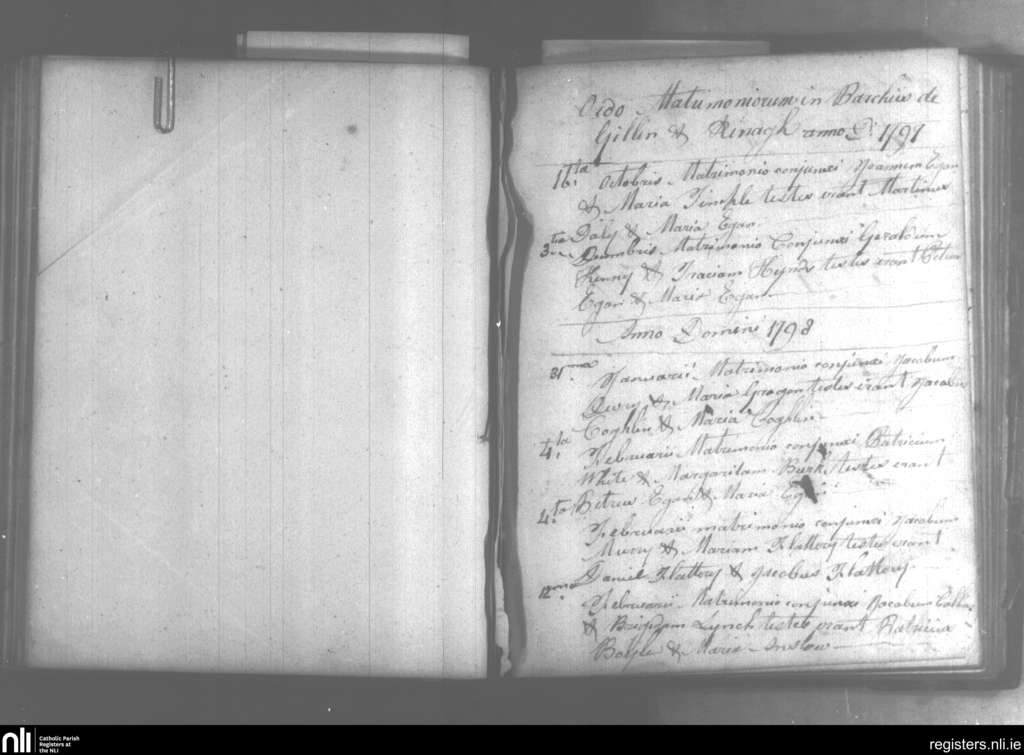 Gallen and Reynagh; County of Offaly; Diocese of Ardagh. Marriages, Oct. 1797 to Feb. 1798