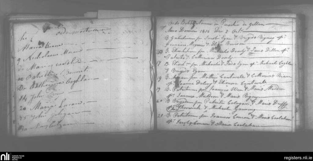 Gallen and Reynagh; County of Offaly; Diocese of Ardagh. Baptisms, Oct. 1816