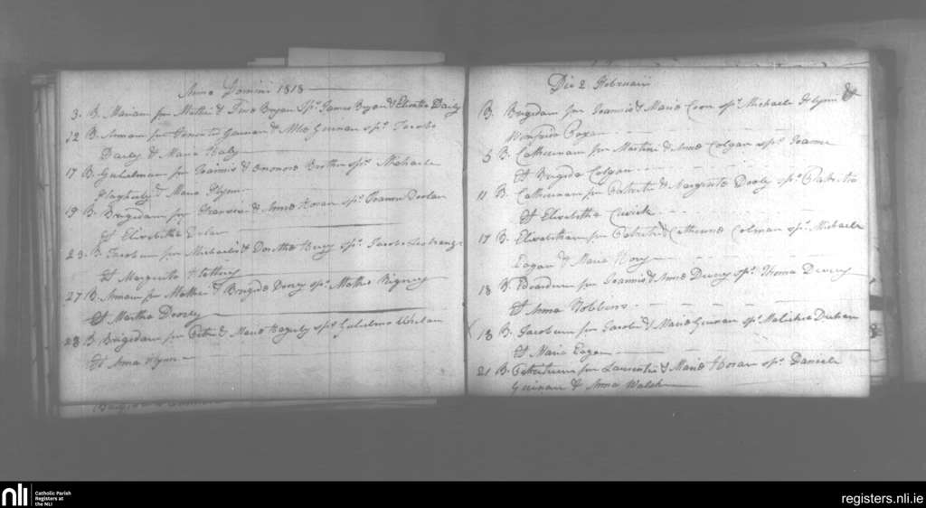 Gallen and Reynagh; County of Offaly; Diocese of Ardagh. Baptisms, Jan. 1818 to Feb. 1818