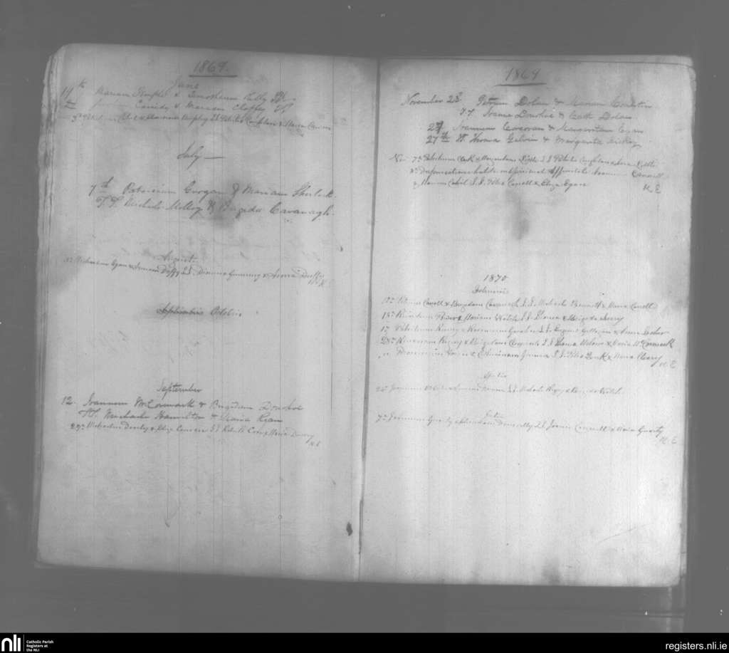 Gallen and Reynagh; County of Offaly; Diocese of Ardagh. Marriages, June 1869 to July 1870
