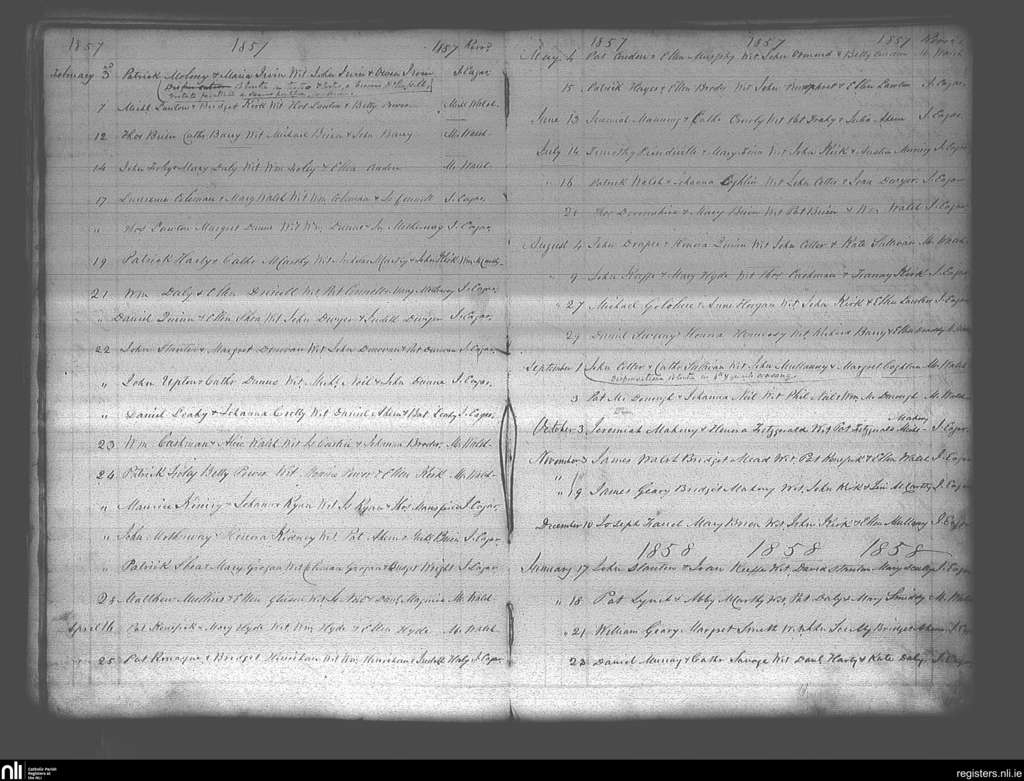 Ballymacoda and Ladysbridge; County of Cork; Diocese of Cloyne. Marriages, Feb. 1857 to Jan. 1858