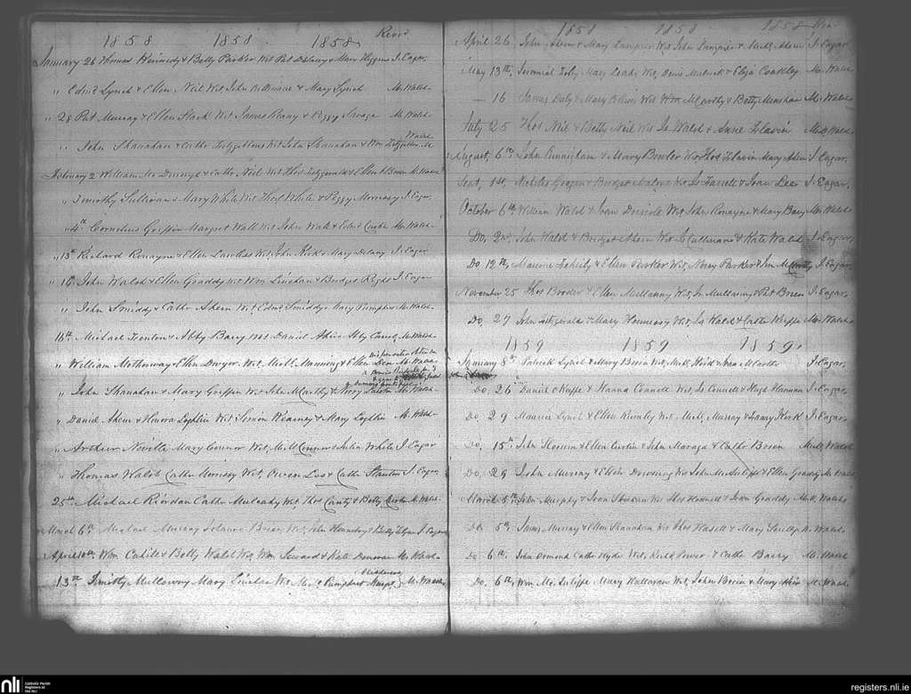 Ballymacoda and Ladysbridge; County of Cork; Diocese of Cloyne. Marriages, Jan. 1858 to Mar. 1859