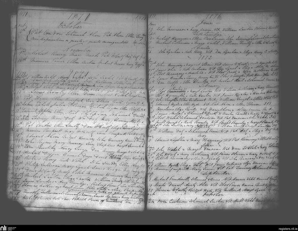 Ballymacoda and Ladysbridge; County of Cork; Diocese of Cloyne. Marriages, Oct. 1870 to Oct. 1872