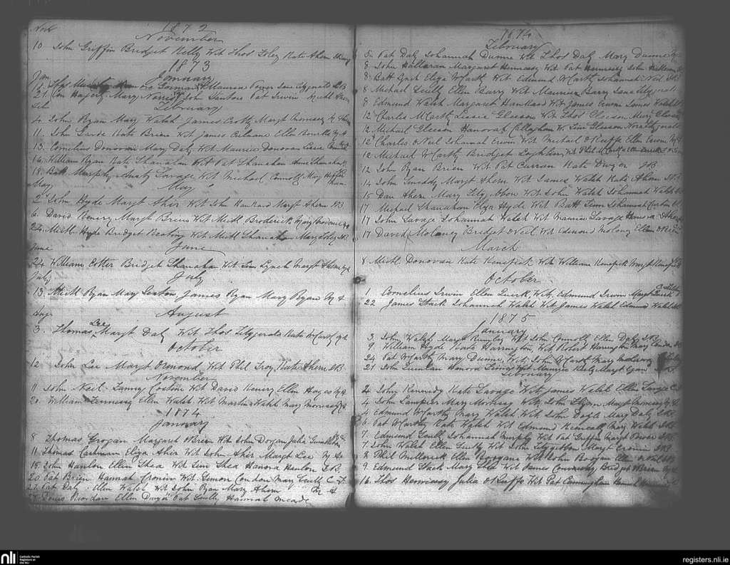 Ballymacoda and Ladysbridge; County of Cork; Diocese of Cloyne. Marriages, Nov. 1872 to Feb. 1875