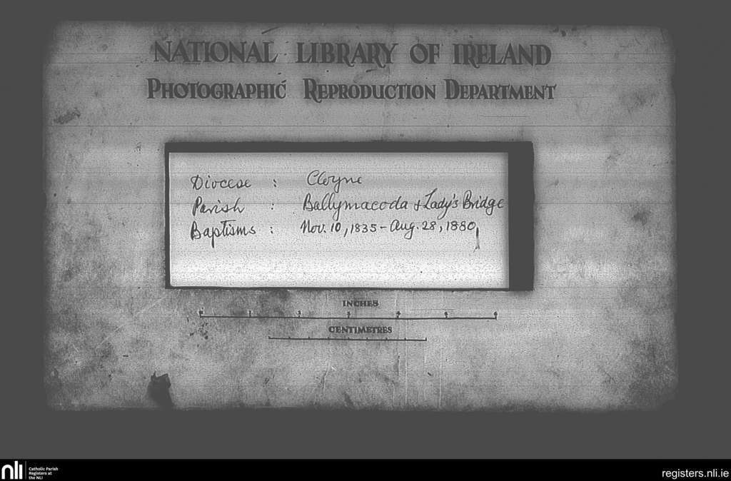 Ballymacoda and Ladysbridge; County of Cork; Diocese of Cloyne. Baptisms