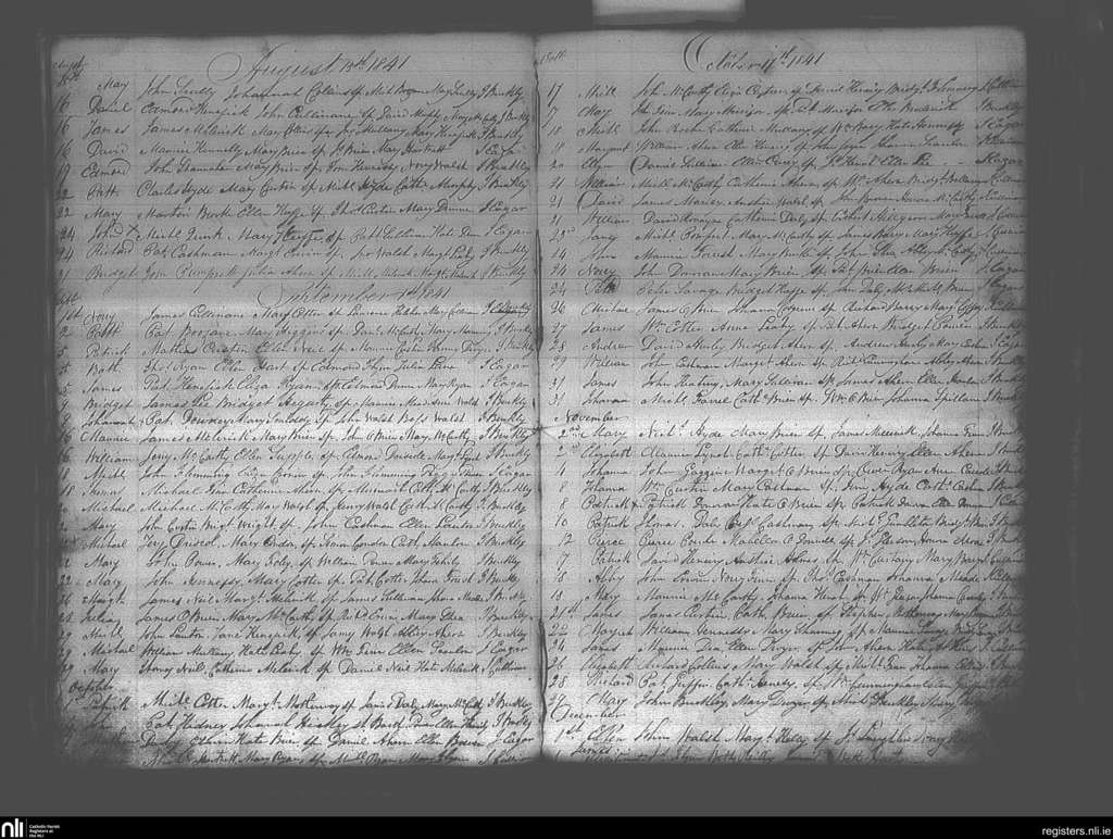 Ballymacoda and Ladysbridge; County of Cork; Diocese of Cloyne. Baptisms, Aug. 1841 to Dec. 1841