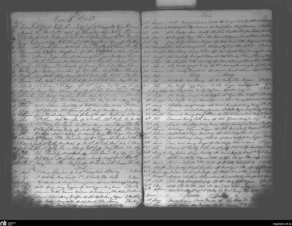 Ballymacoda and Ladysbridge; County of Cork; Diocese of Cloyne. Baptisms, Mar. 1842 to June 1842