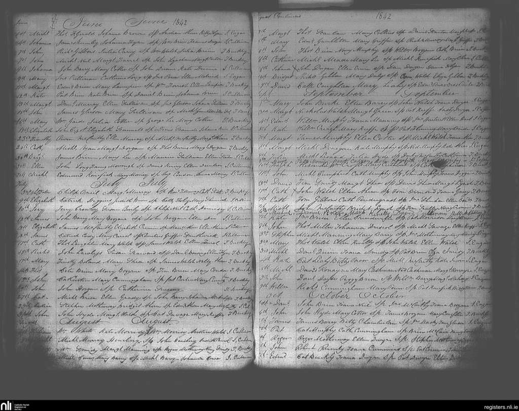 Ballymacoda and Ladysbridge; County of Cork; Diocese of Cloyne. Baptisms, June 1842 to Oct. 1842