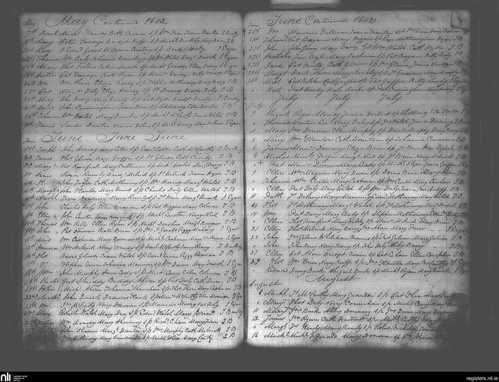 Ballymacoda and Ladysbridge; County of Cork; Diocese of Cloyne. Baptisms, May 1843 to Aug. 1843