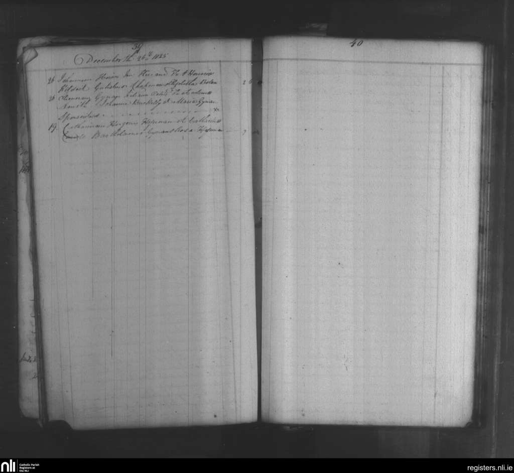 Tisaron and Galen; County of Offaly; Diocese of Ardagh. Baptisms, Dec. 1825