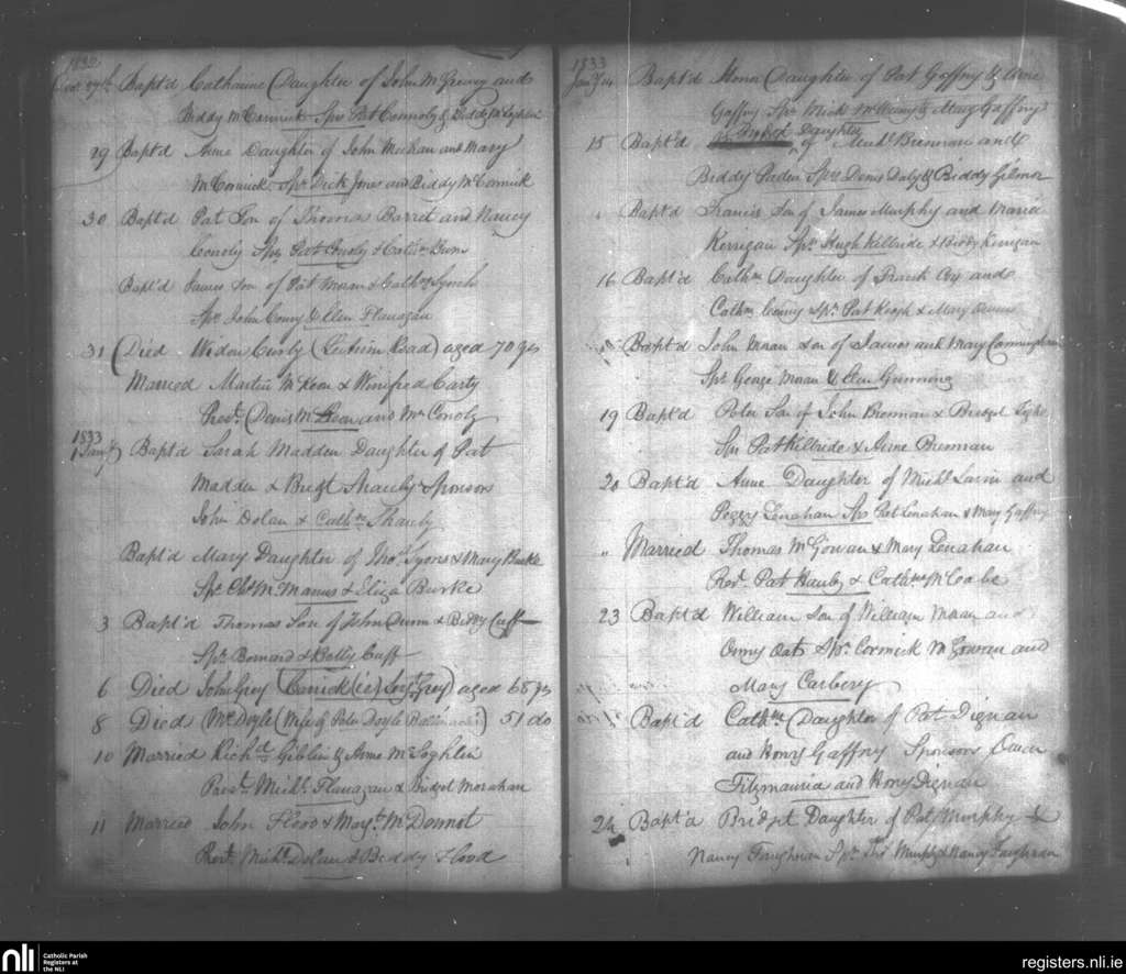 Kiltoghart; County of Leitrim; Diocese of Ardagh. Baptisms, Marriages, Deaths, Dec. 1832 to Jan. 1833
