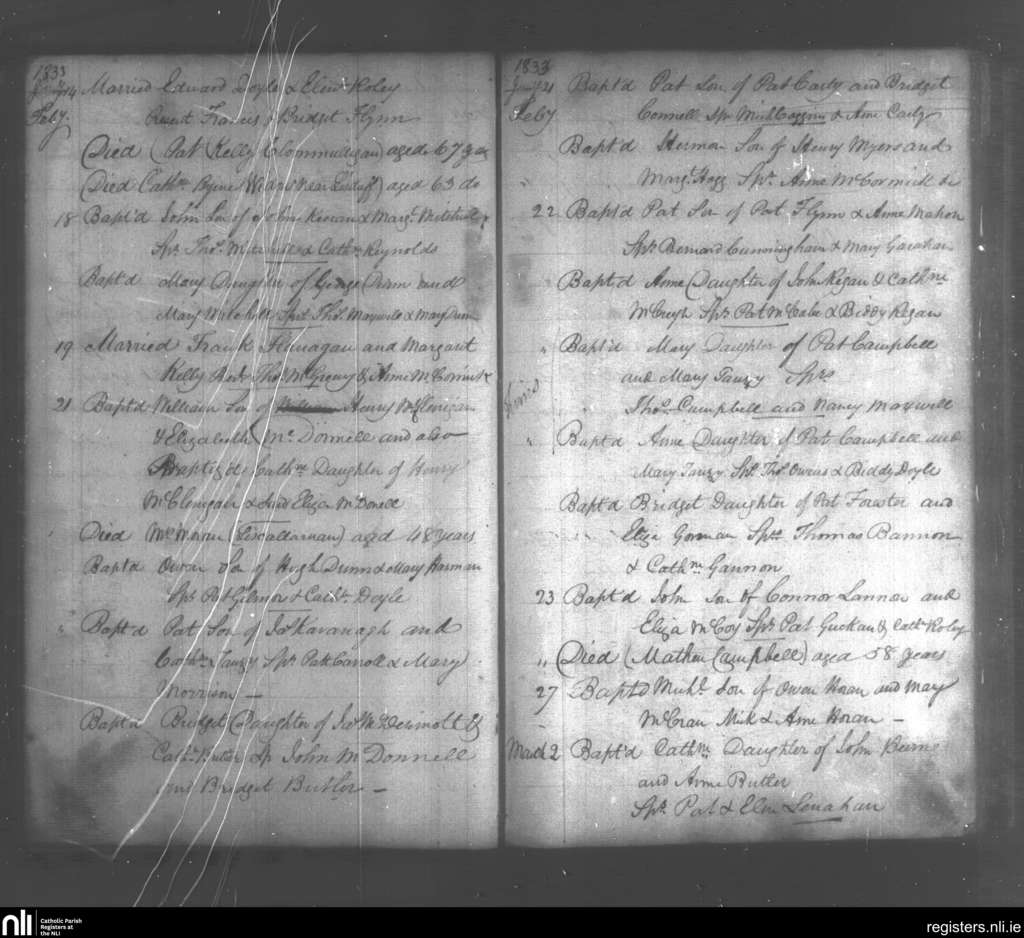 Kiltoghart; County of Leitrim; Diocese of Ardagh. Baptisms, Marriages, Deaths, Feb. 1833 to Mar. 1833