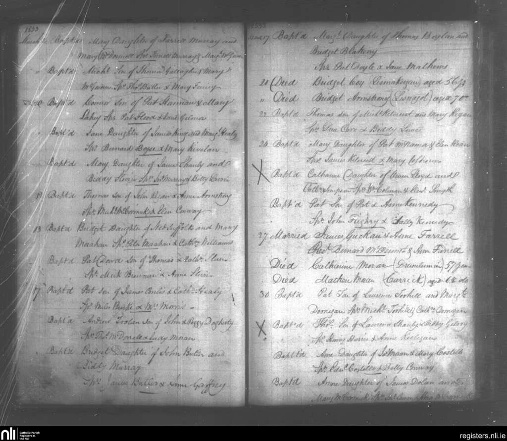 Kiltoghart; County of Leitrim; Diocese of Ardagh. Baptisms, Marriages, Deaths, Mar. 1833 to Mar. 1833