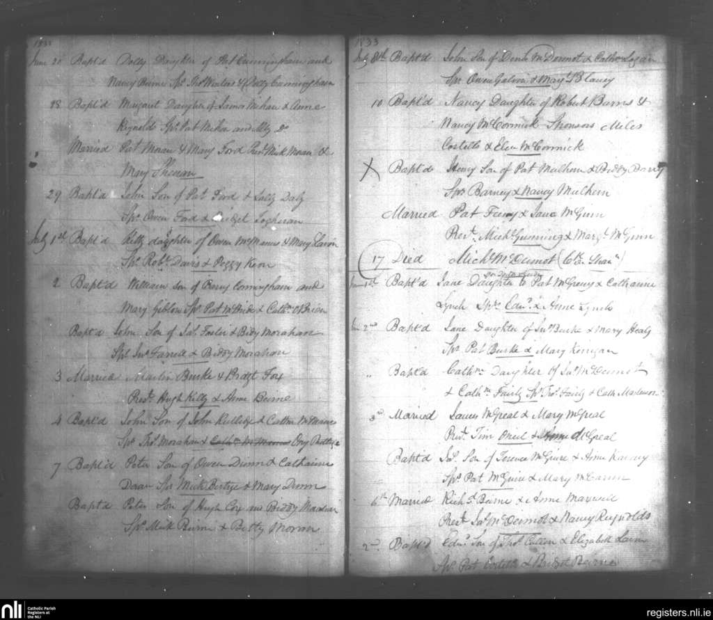 Kiltoghart; County of Leitrim; Diocese of Ardagh. Baptisms, Marriages, Deaths, June 1833 to Nov. 1833