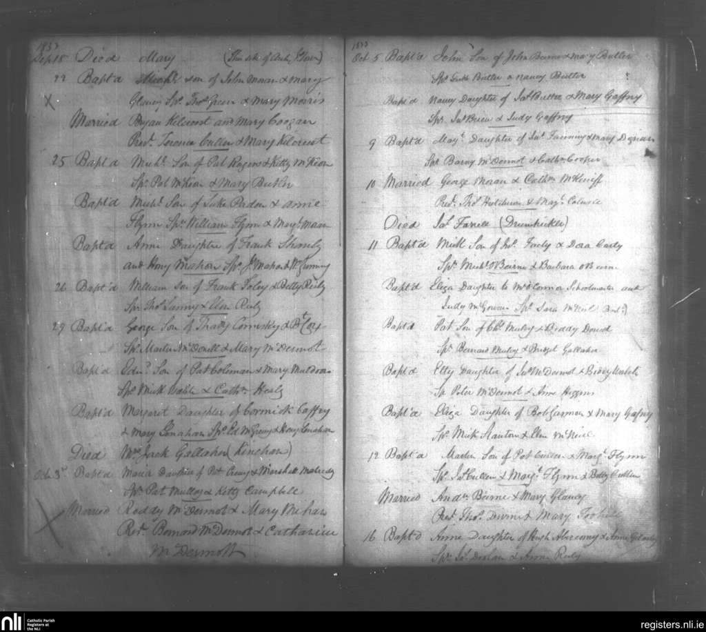 Kiltoghart; County of Leitrim; Diocese of Ardagh. Baptisms, Marriages, Deaths, Sep. 1833 to Oct. 1833