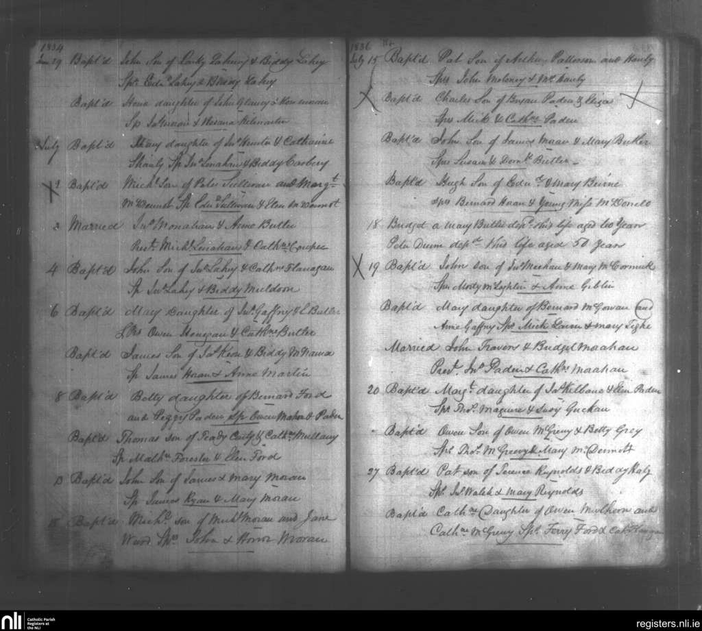 Kiltoghart; County of Leitrim; Diocese of Ardagh. Baptisms, Marriages, Deaths, June 1834 to July 1836
