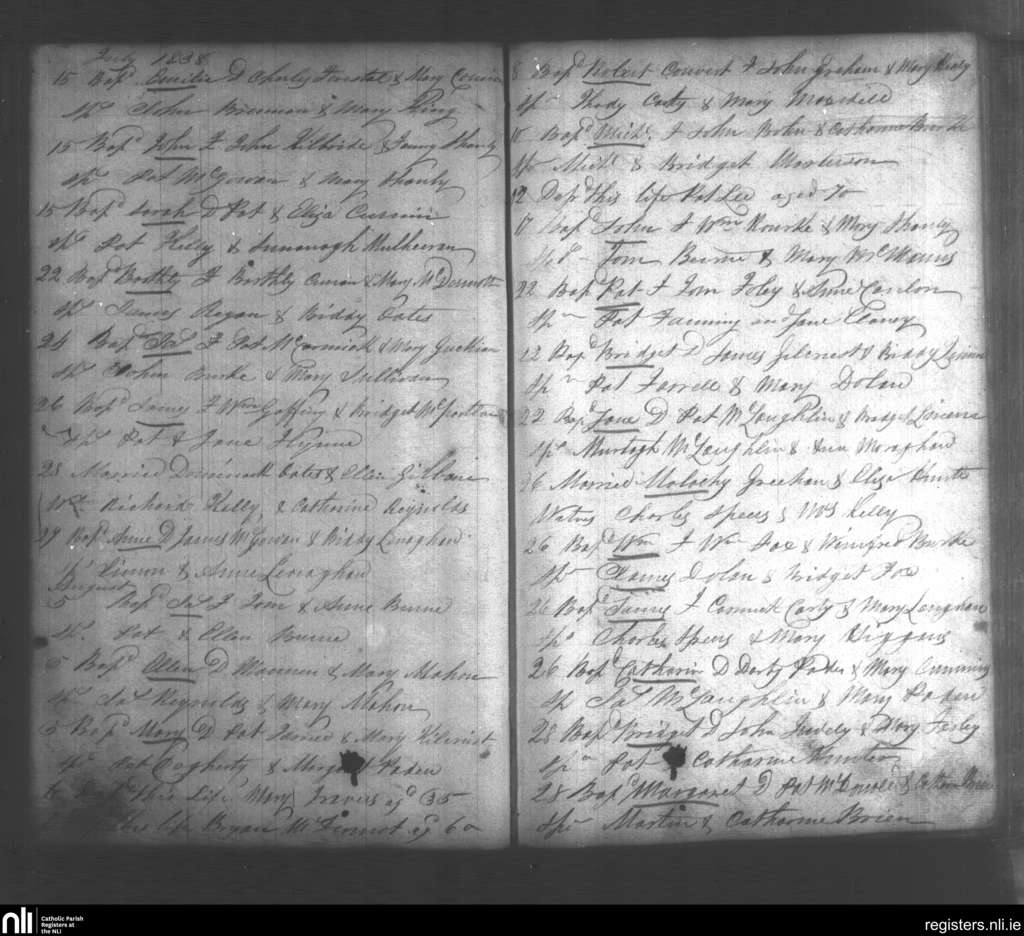 Kiltoghart; County of Leitrim; Diocese of Ardagh. Baptisms, Marriages, Deaths, July 1838 to Aug. 1838