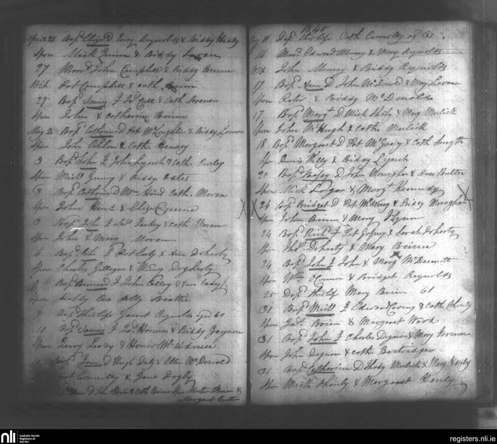 Kiltoghart; County of Leitrim; Diocese of Ardagh. Baptisms, Marriages, Deaths, Apr. 1840 to May 1840