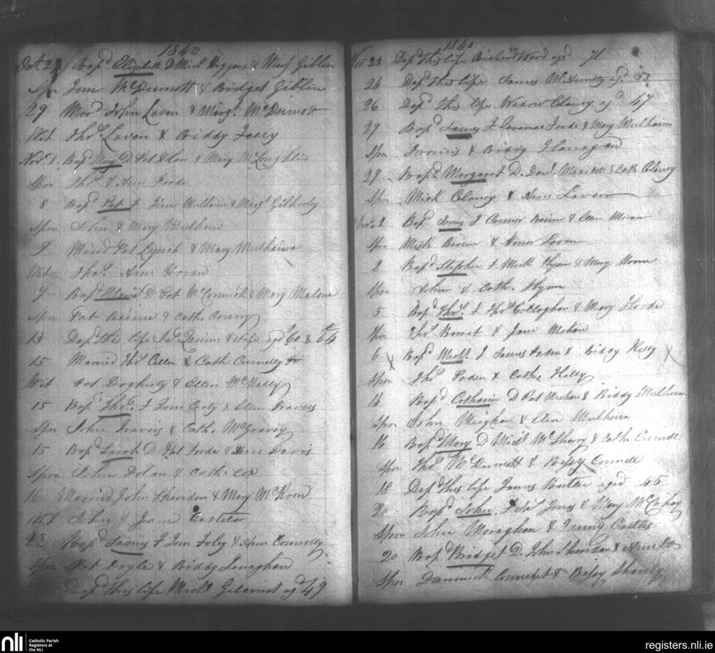 Kiltoghart; County of Leitrim; Diocese of Ardagh. Baptisms, Marriages, Deaths, Oct. 1840 to Dec. 1840