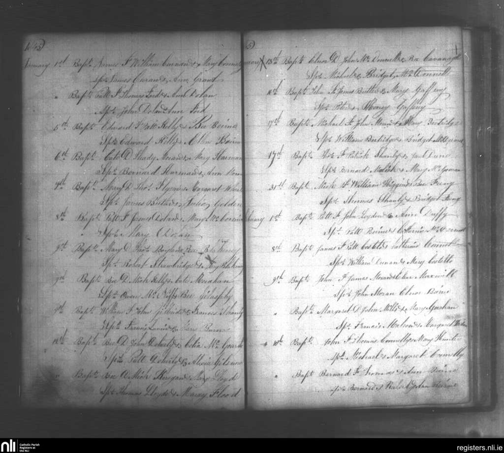 Kiltoghart; County of Leitrim; Diocese of Ardagh. Baptisms, Jan. 1845 to Feb. 1845