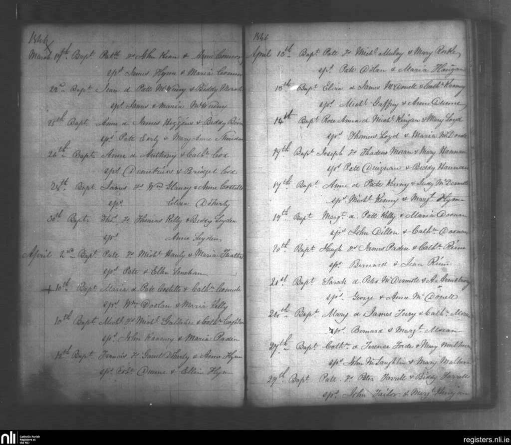 Kiltoghart; County of Leitrim; Diocese of Ardagh. Baptisms, Mar. 1846 to Apr. 1846