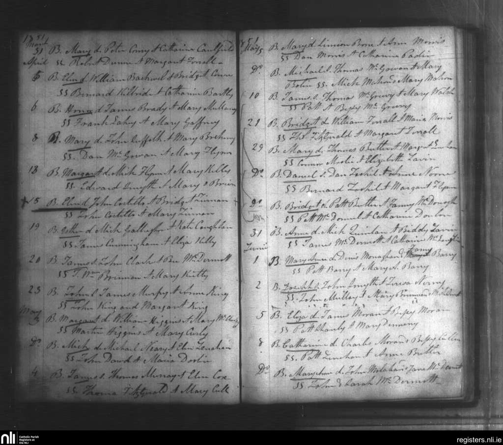 Kiltoghart; County of Leitrim; Diocese of Ardagh. Baptisms, Mar. 1851 to June 1851