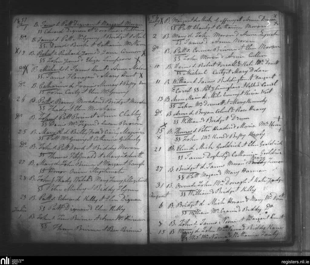 Kiltoghart; County of Leitrim; Diocese of Ardagh. Baptisms, June 1851 to Aug. 1851