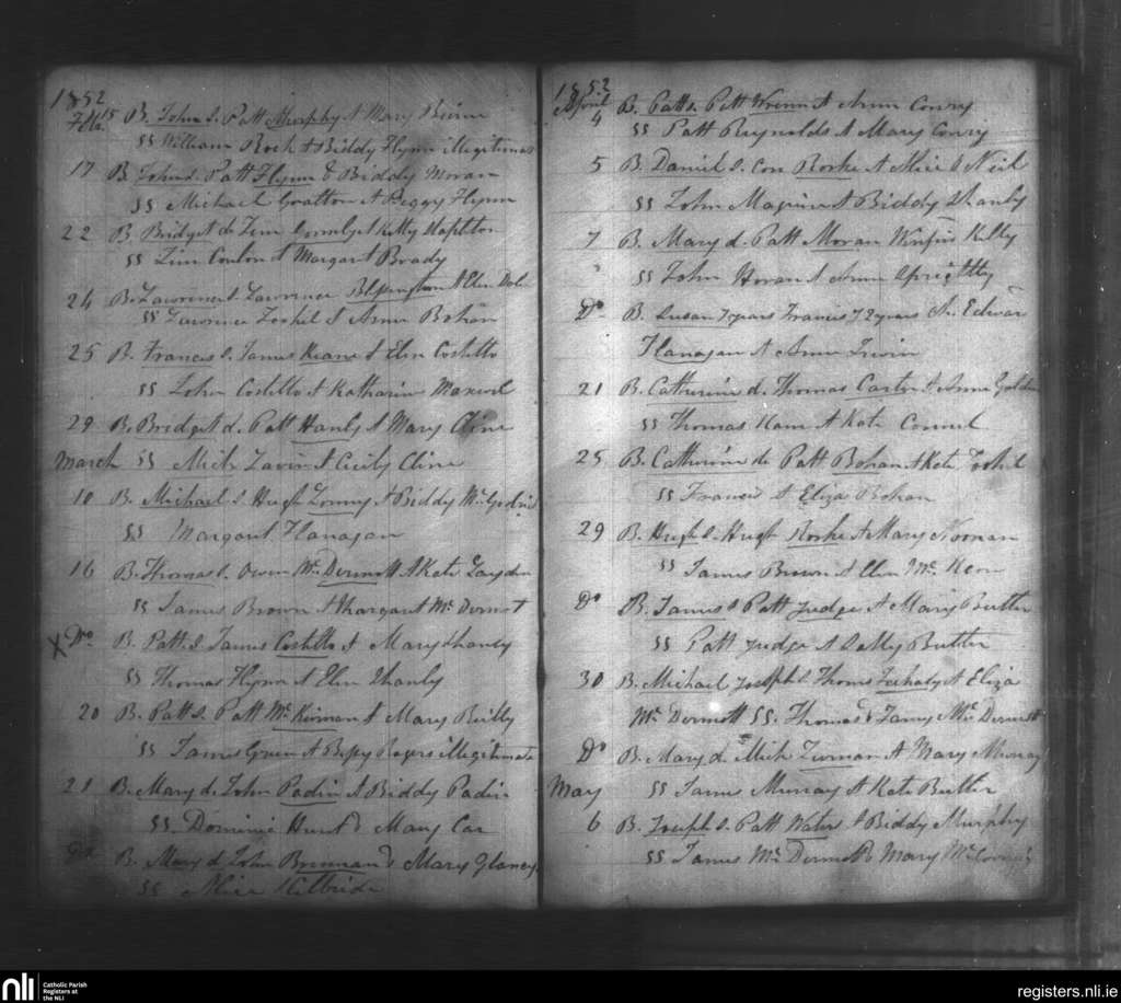 Kiltoghart; County of Leitrim; Diocese of Ardagh. Baptisms, Feb. 1852 to May 1852