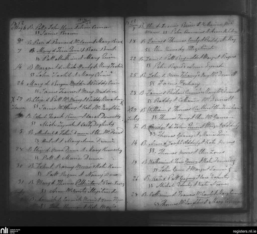 Kiltoghart; County of Leitrim; Diocese of Ardagh. Baptisms, May 1852 to July 1852