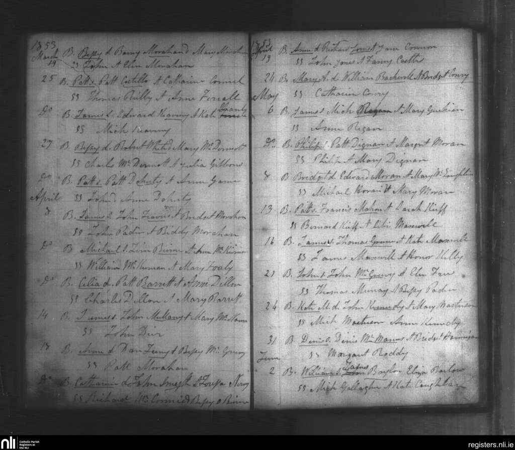 Kiltoghart; County of Leitrim; Diocese of Ardagh. Baptisms, Mar. 1853 to June 1853